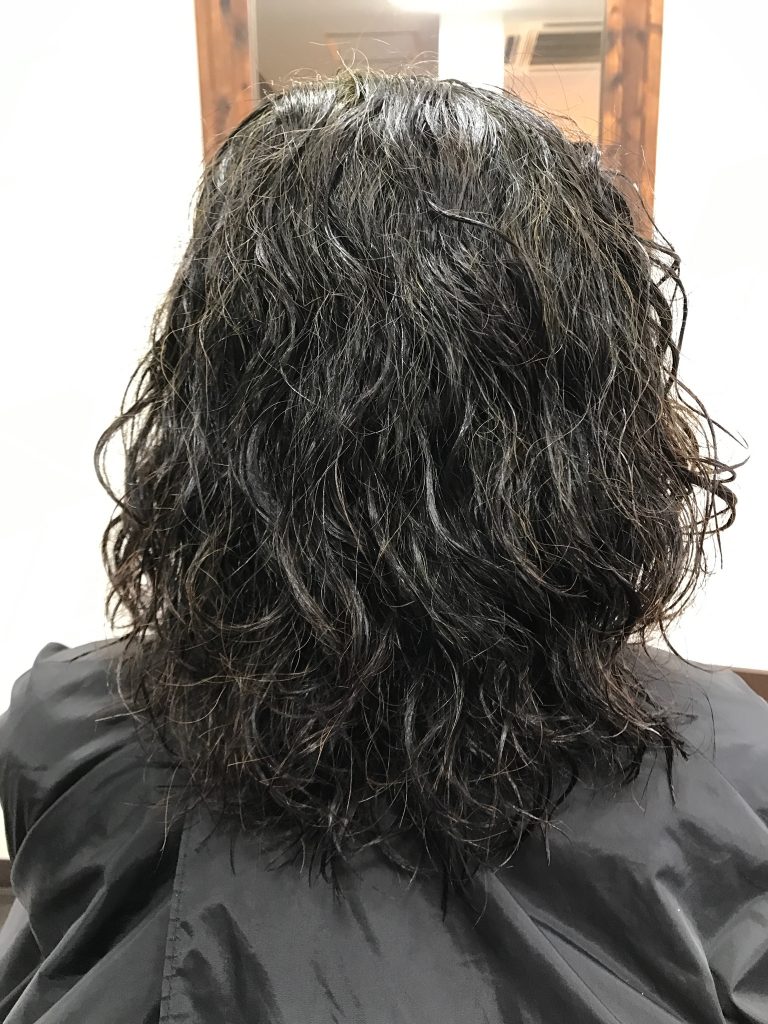 ハナヘナでパサつきが収まり、綺麗にウェーブが出ています。