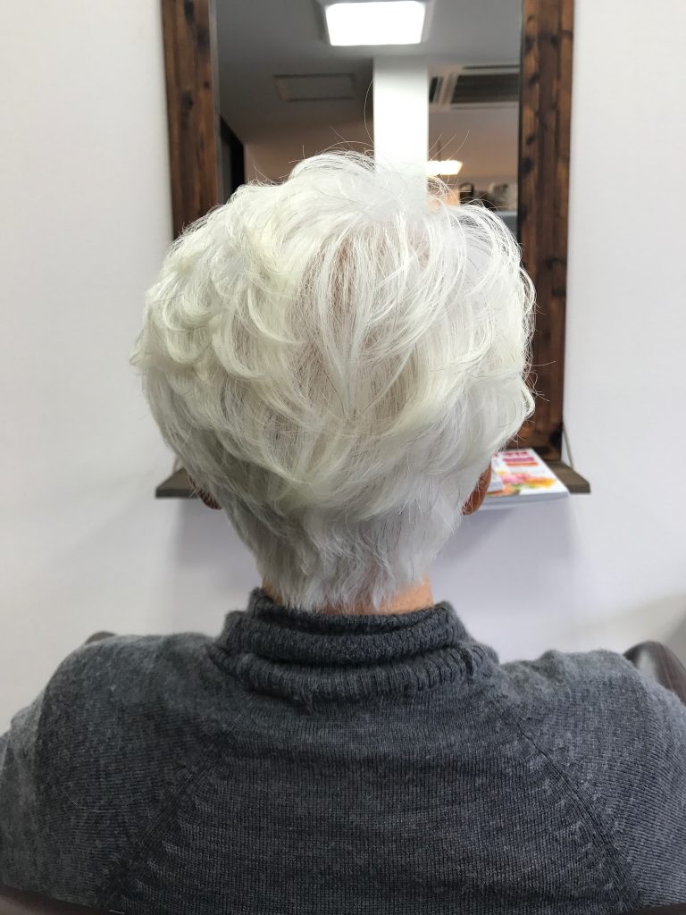 チョコチョコっとカットして、バーッと手ぐしで後ろに流すように乾かした状態です。