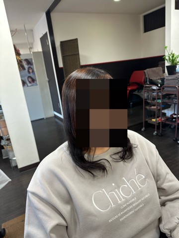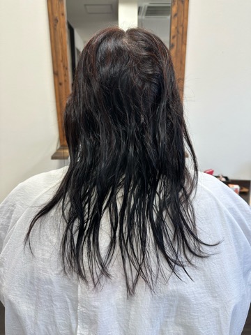 オイルを付けてバーっと乾かして裾だけクルクルしながらドライヤーを当てた状態です。