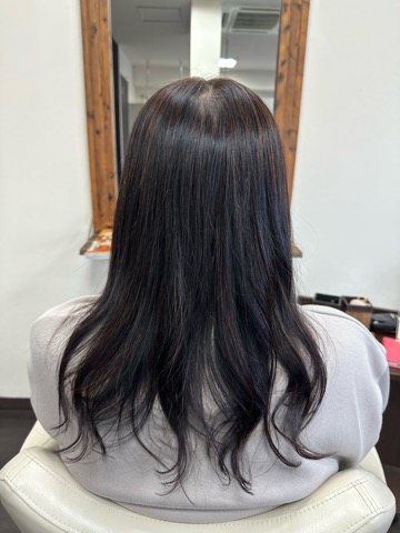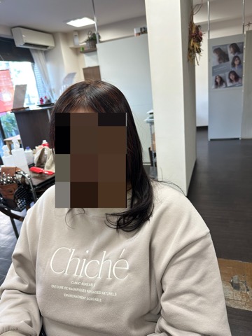 Sequence fix straightでケアしながらリタッチ矯正と、肩下に大きめカールでデジタルパーマをかけました。