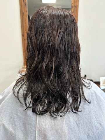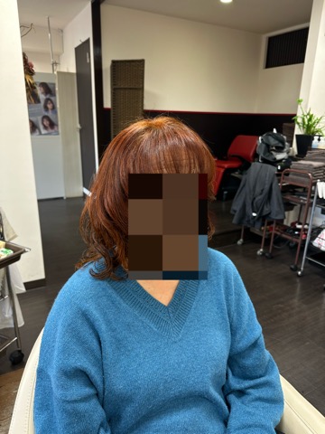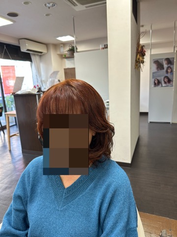 表面一線の途中までと前髪をブローして、ヘアクリームを付けて乾かした状態です。