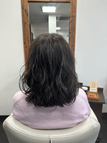 ヘナをしているので、プレ処理をしっかり行なってから、エアウェーブでパーマをかけました。