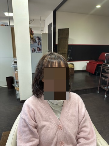 ヘアクリームを付けて乾かした状態です。