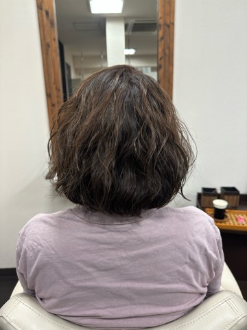 以前エアウェーブでかけたパーマがちょうど良く出ていますが、肩スレスレくらいに切りたい。が希望です。
