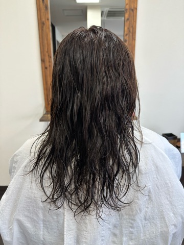オイルとナゾエマルジョンとヘアクリームを付けて、7割ドライした状態です。