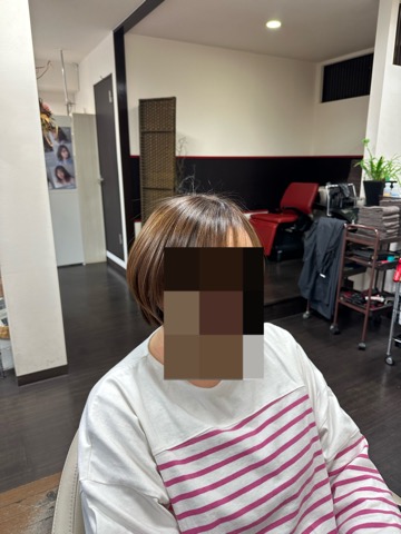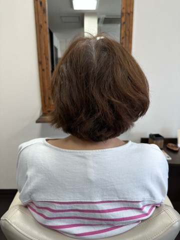 伸ばしているのですが、クセでウネってハネて大変って事でかける事になりました。