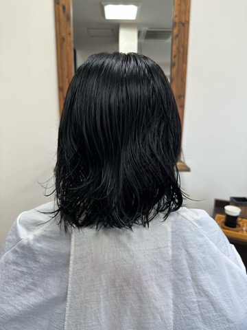 オイルを付けて手ぐしで引っ張りながら8割ドライして、表面一線をブローしました。