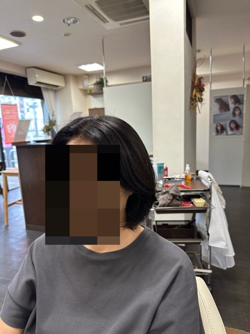 梳き過ぎると余計にまとまらなくなるので、適度に梳いて、スライドとエフィラージュで毛量を落としました。