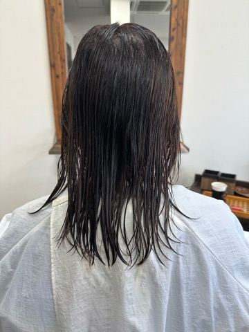 カットしたので少し短くなりましたが、オイルを付けて手ぐしで乾かした状態です。