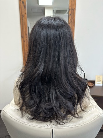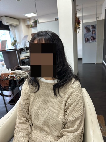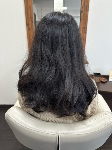 レイヤーをパーマが無くならない位置から入れて、ドライカットで間引いて軽くしました。