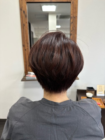 耳出しのグラボブでくせ毛で膨らみやすいので、軽くしすぎない程度に軽くが希望です。
