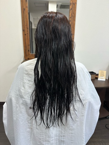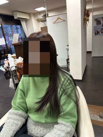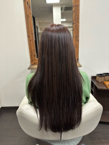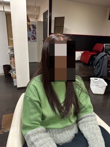 ヘナ毛なので、リタッチ矯正部分はパワー上げて、既矯正毛部分はケアを主に縮毛矯正を行いました。