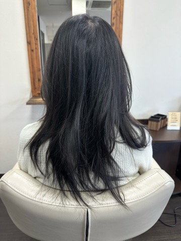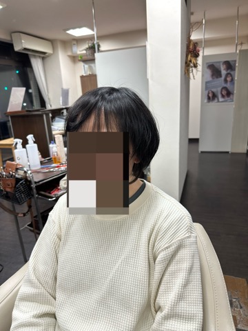 前髪も軽く流せるくらいのかけ方にしました。